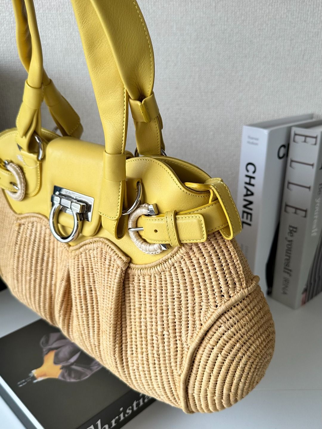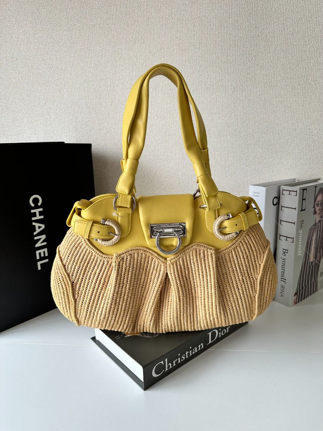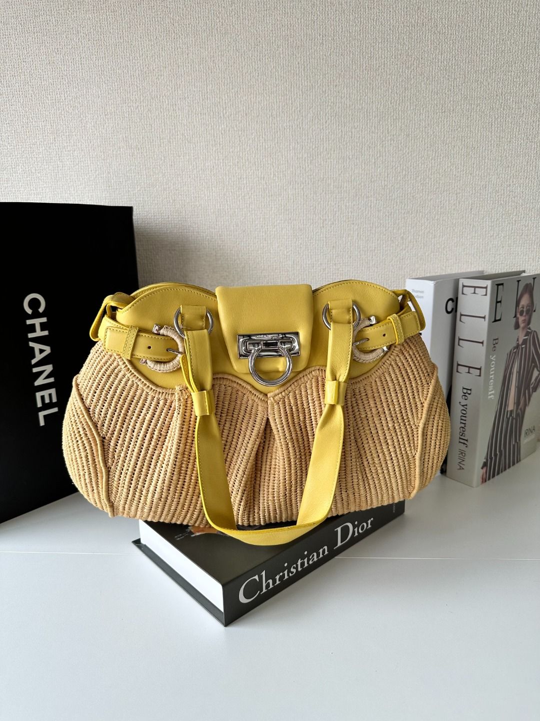 CONDITION Fair Good Very Good Great Excellent Pristine Condition Details There are no noticeable scratches on the exterior, no noticeable stains on the interior, and the overall condition is good. Serial Model • No Chip Authentication • Entrupy OVERVIEW Exterior Color Cream Exterior Material Leather Lining Color Beige Lining Material Fabric Handle/Strap Color Cream Handle/Strap Material Leather Hardware Color Gold Closure Magnetic Snap Pattern Solid Size 10 x 14 x 5 inches Discover elegance and sophistication with the Salvatore Ferragamo Hang Bag in Cream Leather. This exquisite shoulder tote, crafted from premium leather, showcases timeless beauty and luxury. With dimensions of 10 x 14 x 5 inches, it offers ample space for your essentials, while the magnetic snap closure ensures security and style. Despite being a pre-loved item, it boasts an impressive condition rating of 8.5/10, with no noticeable scratches or stains. The gold hardware adds a touch of opulence, making this bag a perfect companion for any chic occasion. Authenticated by Entrupy, embrace the allure of Ferragamo with confidence.