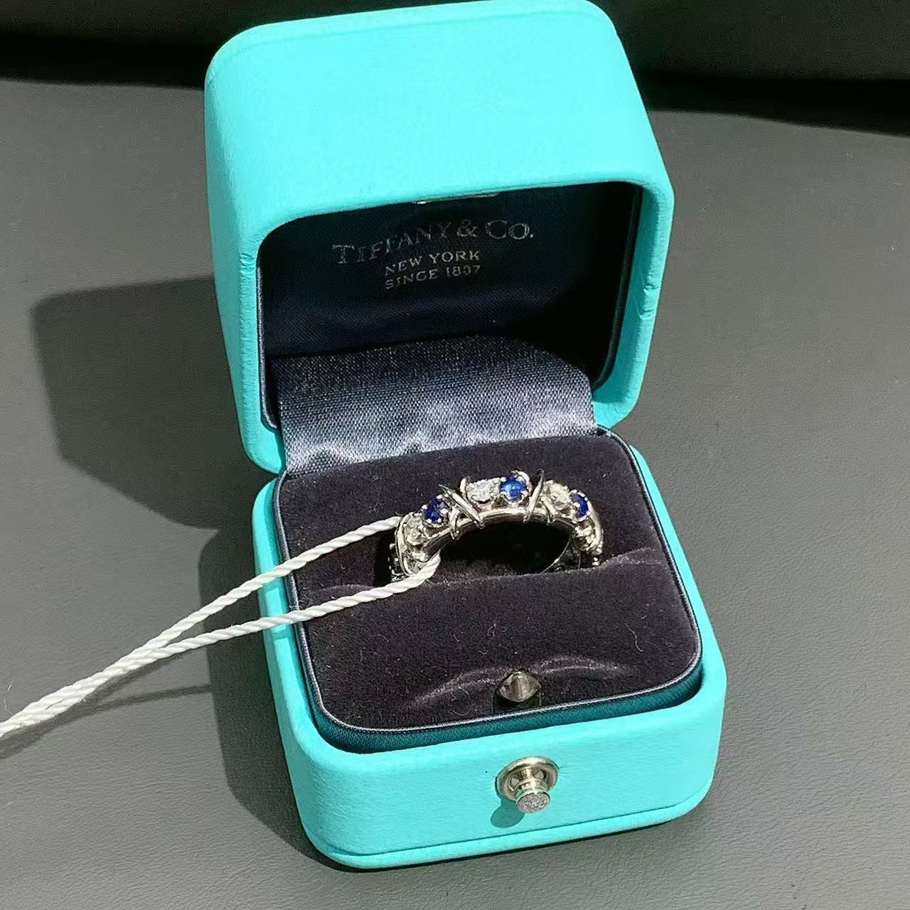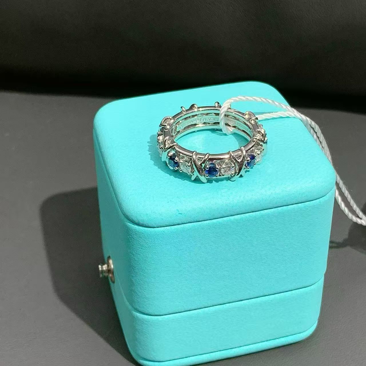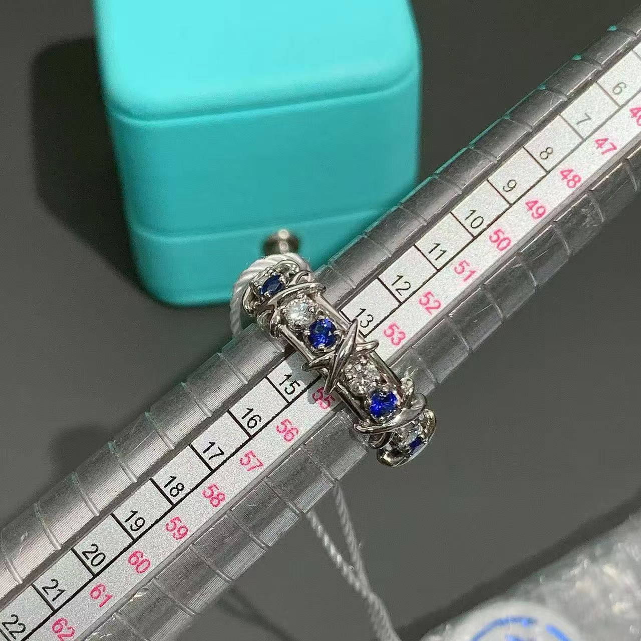 Tiffany & Co.Schlumberger Sixteen Stone ring18k yellow gold diamonds blue sapphires